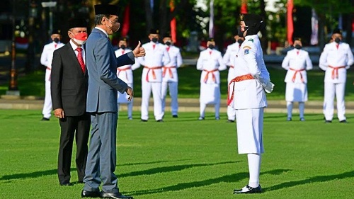 Hadir upacara pengukuhan Paskibraka 2021 yakni, Menteri Pemuda dan Olahraga, Zainudin Amali, Kepala Sekretariat Presiden, Heru Budi Hartono, dan Sekretaris Militer Presiden, Marsda TNI M. Tonny Harjono.(Red, BPMI Setpres)