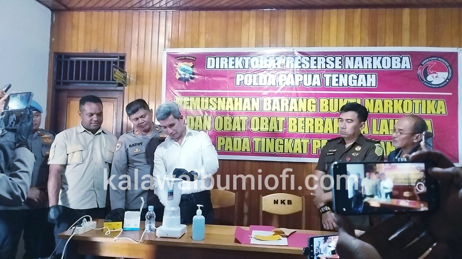 Katanya, pemusnahan barang bukti tersebut dipimpin langsung oleh Kasubdit I Ditresnarkoba Polda Papua Tengah, AKBP Domingos De F. Ximenes dihadiri dan disaksikan oleh sejumlah pihak terkait, yakni Eko Nuryanto selaku Kasi Pidum Kejaksaan Negeri Nabire, Bambang Darmono sebagai penasihat hukum tersangka, IPTU Gatot perwakilan Irwasda Polda Papua Tengah, IPTU Amarudin Jafar, S.Sos perwakilan Kabid Propam Polda Papua Tengah, serta IPDA Boby Dwi Putra dari Bid Humas Polda Papua Tengah.