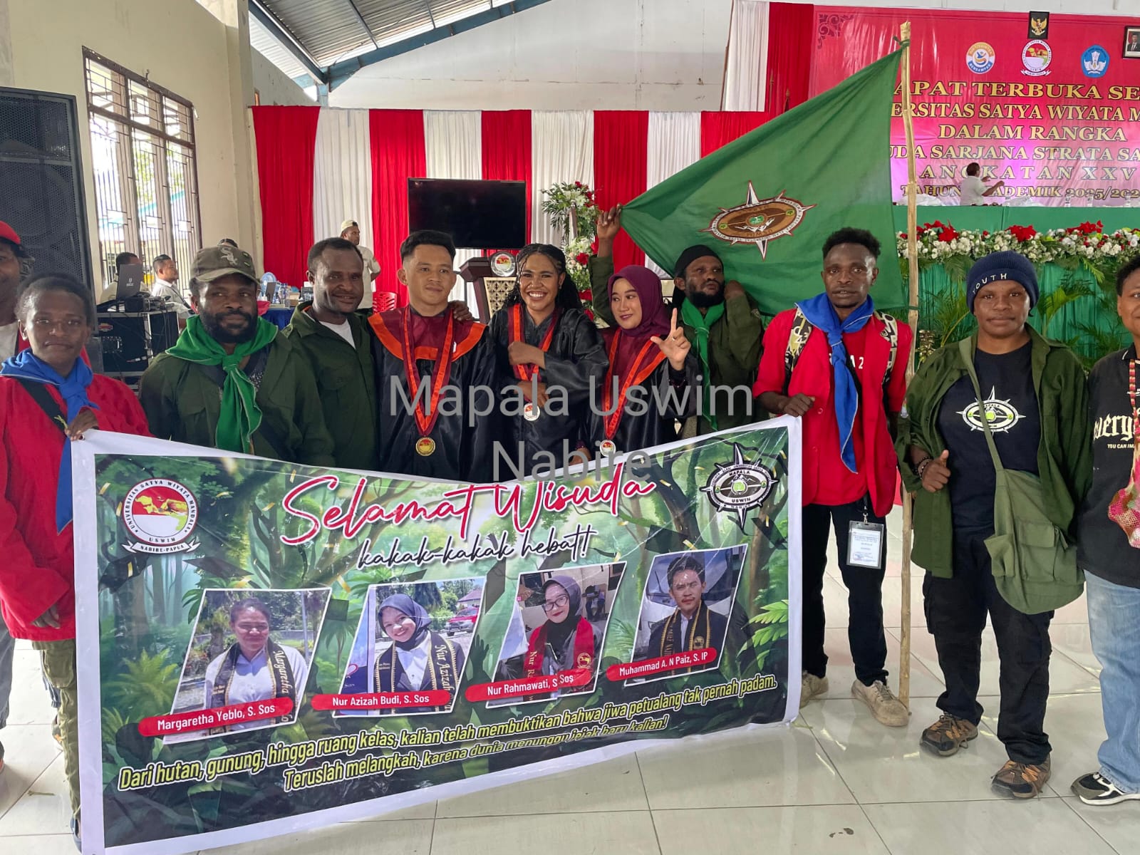 Nabire, Kalawaibumiofi.com |  Sebanyak empat orang aktivis Mapala (Mahasiswa Pecinta Alam) Universitas Satya Wiyata Mandala (USWIM) Nabire resmi menyandang gelar sarjana pada Senin (27/4/2026). Keberhasilan mereka menjadi bukti bahwa semangat petualang dan kepedulian terhadap alam dapat berjalan seiring dengan prestasi akademik yang gemilang.
