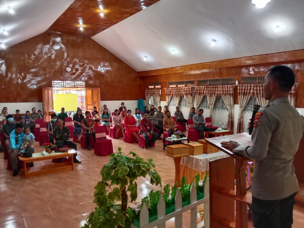 Moanemani, Bumiofinavandu – Kapolres Dogiyai, Papua melalui Kamtibmas kepada Jemaat Gereja GPSDI Kristus Ajaib Moanemani. Himbauan ini disampaikan oleh PS Kasat Binmas Polres Dogiyai usai mengikuti ibadah Minggu, (29/05/2022). Ibadah dipimpin oleh Pdt. AGUSTINUS TANDI, STh.