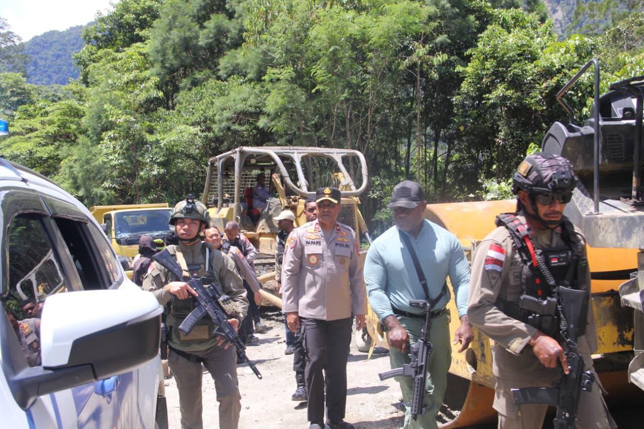 Kapolda Papua Tengah turun langsung ke lokasi untuk melihat kondisi jalan yang terputus akibat longsor.