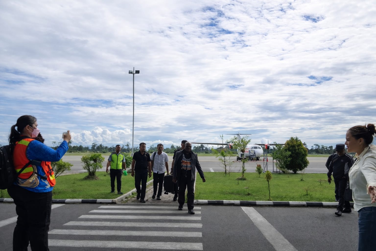 Rombongan disambut awak media untuk memberikan keterangan pers terkait kondisi masyarakat yang terdampak insiden penembakan dan kerusuhan yang terjadi beberapa hari terakhir.