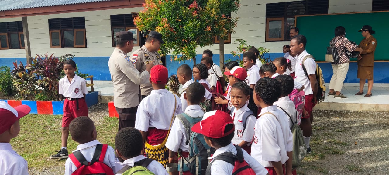 Dengan program Polisi Pi Ajar ini, Polres Nabire melalui Sat Binmas lakukan di SD Negeri Inpres Kota Baru, Senin (28/11/2022).